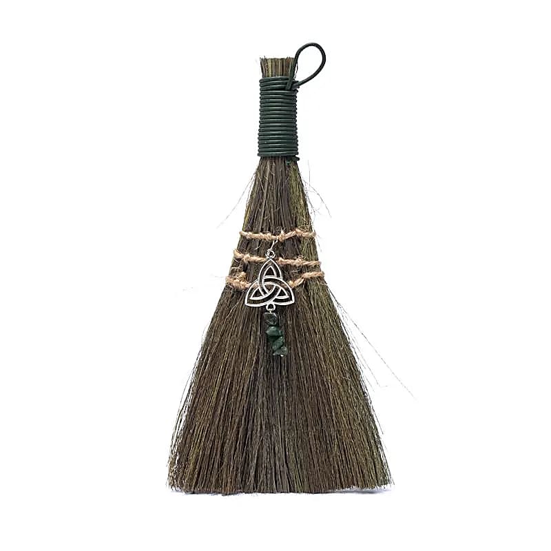 Weinig voorwerpen zijn zo uniek representatief voor een rijke en folkloristische geschiedenis als de traditionele heksenbezem. Verwijder de spinnenwebben van het alledaagse en luid het buitengewone in met dit tijdloze hulpmiddel. Deze kleine, met zorg uit bezemgras (thysanolaena latifolia) gemaakte handbezem is een essentiële toevoeging aan het altaar van iedere heks.
