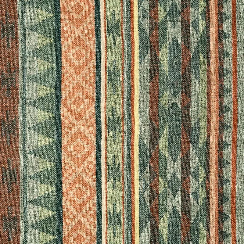 Luxe meditatie omslagdoek met een zachtgroen en terracotta geweven patroon in aardse tinten.