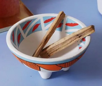 De versiering op het schaaltje is gemaakt volgens een traditioneel ontwerp met tribale patronen. Je kunt het schaaltje onder andere gebruiken voor het branden van korrelwierook op een houtskooltje, witte salie, smudgekruiden en palo santo.